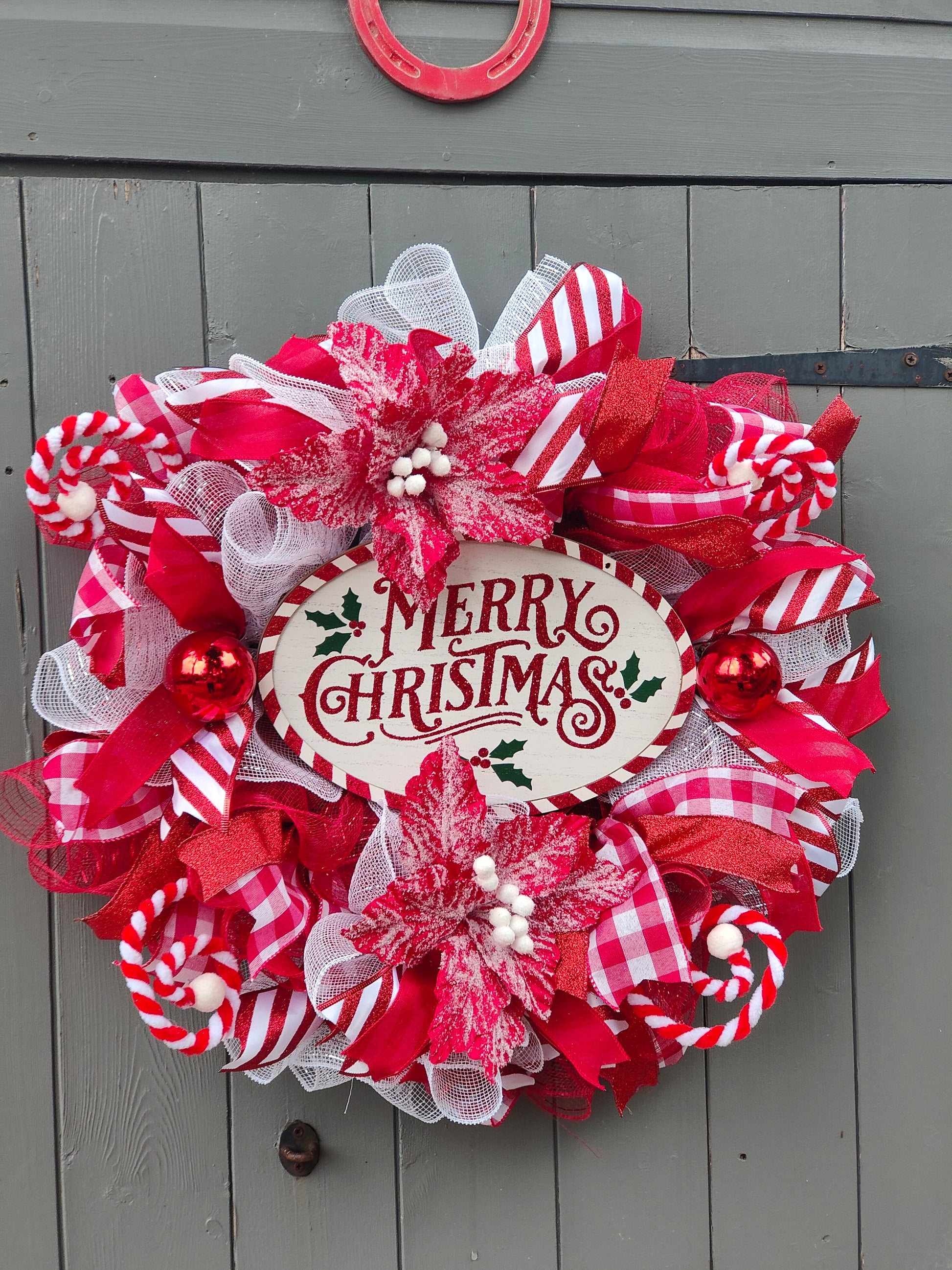 Red White Candycane Merry Christmas Wreath