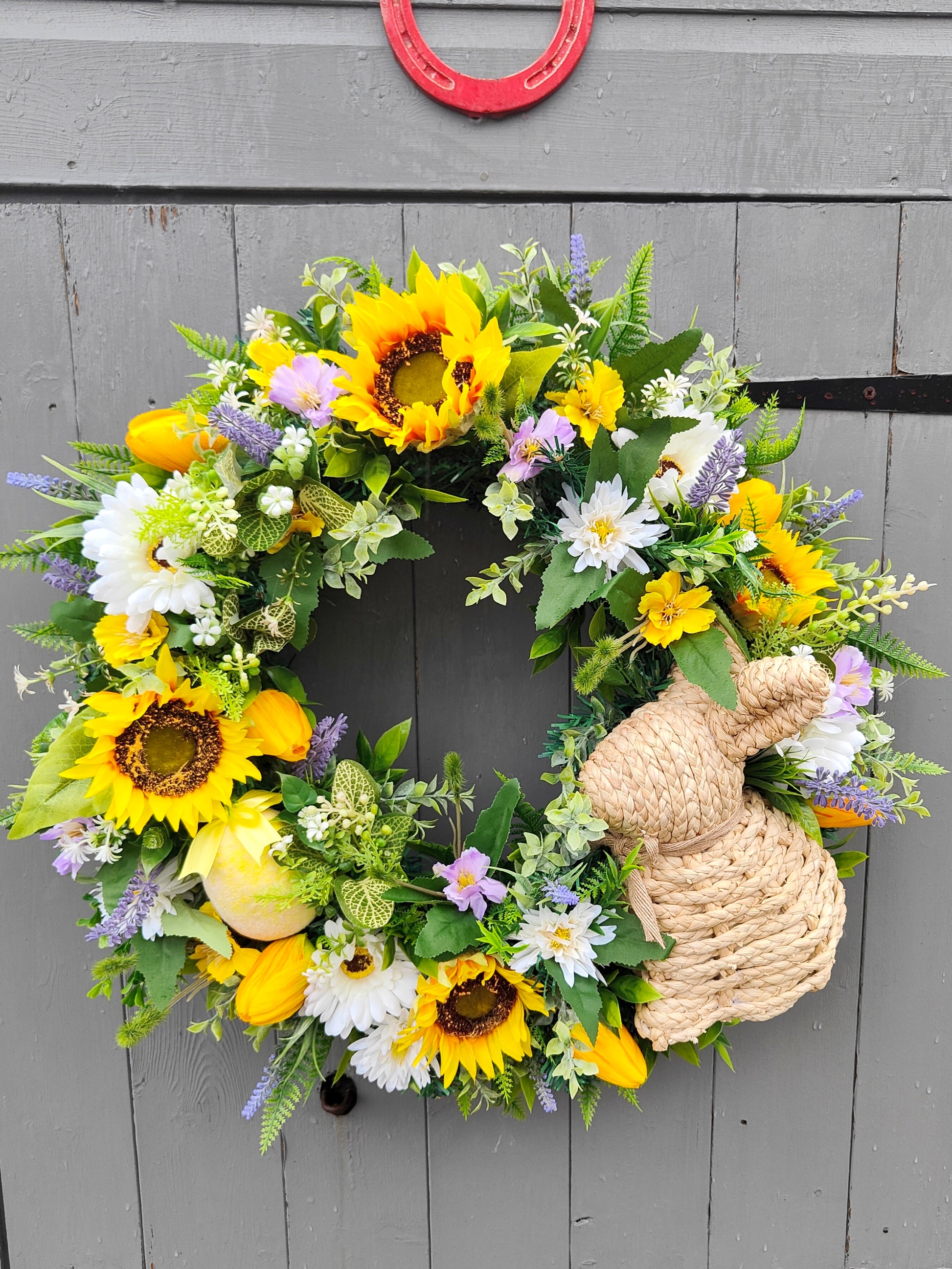 Spring Sunflower Bunny Easter Artificial Flower Wreath